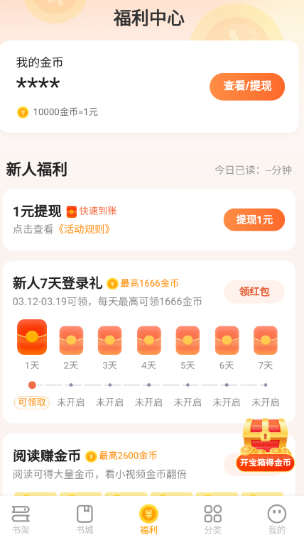 2、阅读赚金币,支持免费提现