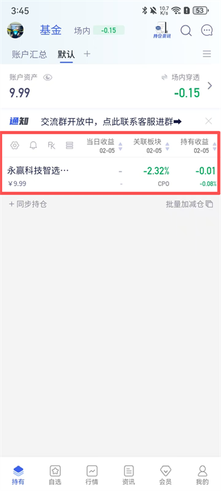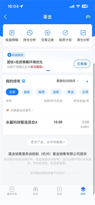 4. 添加成功后,可在首页【持有】页面查看该基金的最新状态。