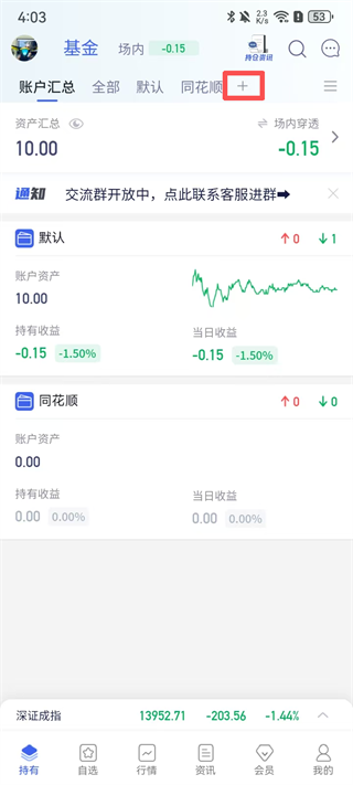 1. 在养基宝App的【持有】页面,点击右上角【+】按钮。