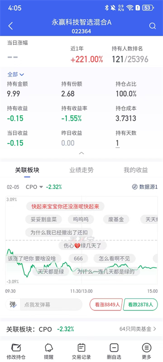 2. 在基金详情页面,即可直观查看该基金的当日涨跌幅、净值走势及其他关键数据。