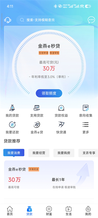 提供金燕e秒贷、金燕e购贷、金燕e薪贷等多样化贷款产品,支持在线申请、极速审批,并涵盖贷款进度查询、还款计划管理及个性化产品推荐。