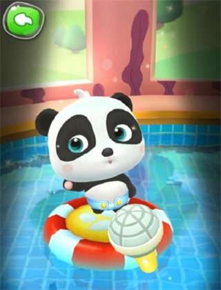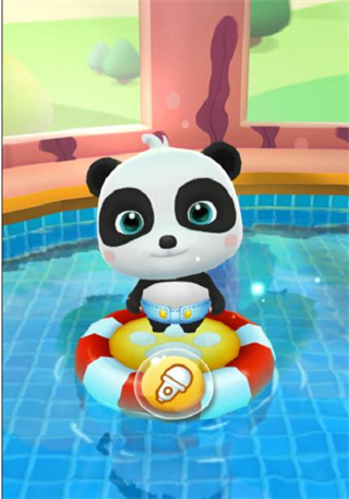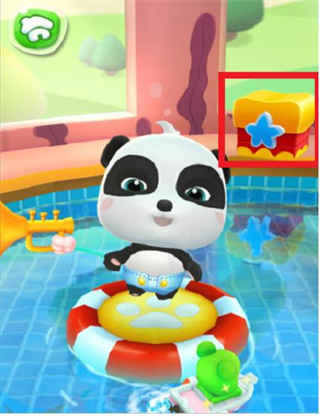 6. 奇奇还会吹响欢快的喇叭声!轻按泳池边树旁的五角星礼物盒按钮,即可进入换装界面。