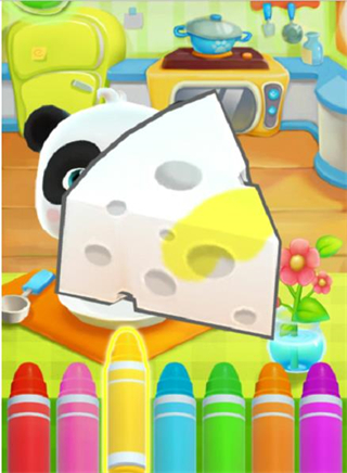 1. 安装完成后,打开“爱说话的奇奇”主界面,首先进行美食涂色环节:点击彩笔选择颜色,在奶酪或糕点上滑动即可上色,完成后奇奇会开心地吃掉它。