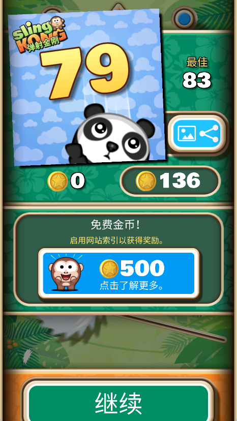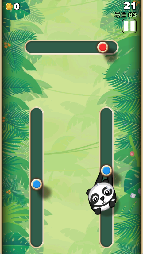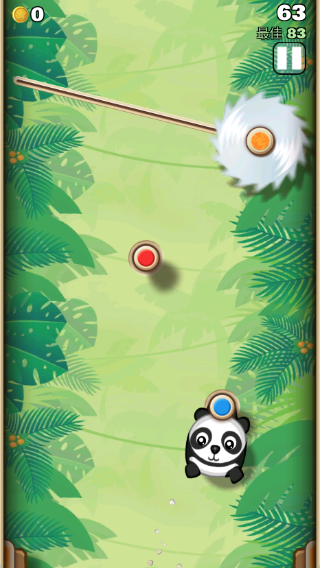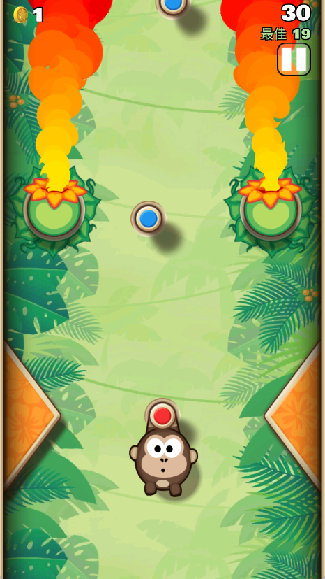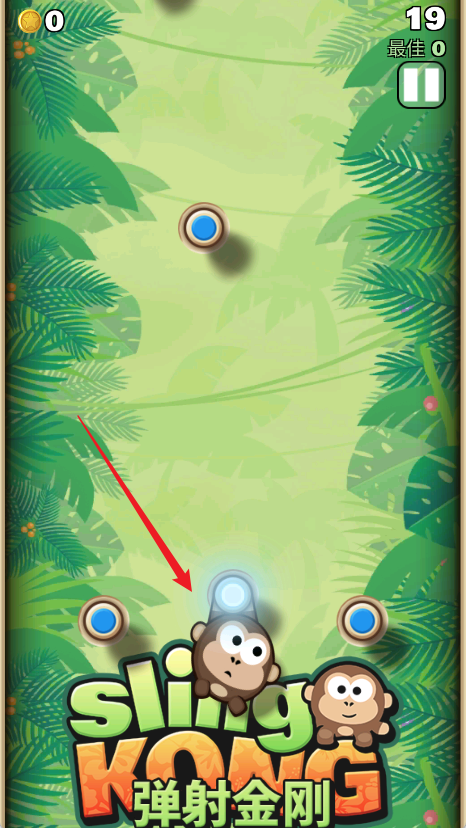 1. 游戏开始时,猴子金刚会吊挂在初始木桩上。玩家需通过调整弹射角度与力度,精准发射至下一个抓点,目标是持续悬挂、避免掉落。