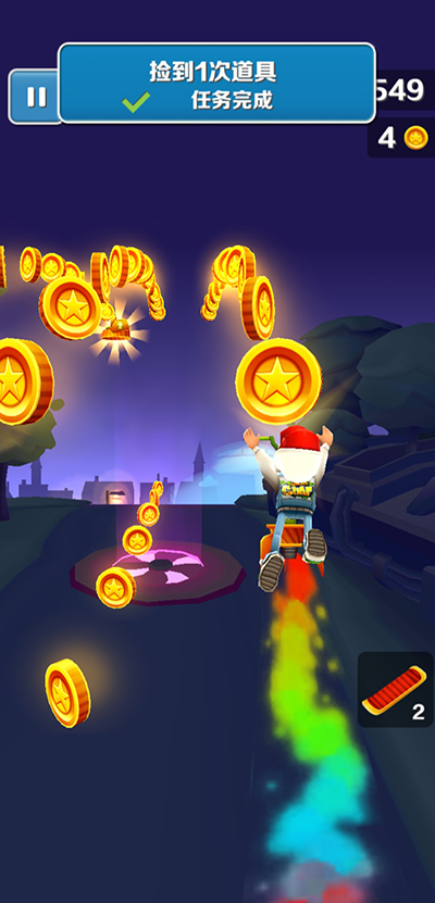 3. 直观流畅的操作机制:仅需滑动屏幕即可完成跳跃、下蹲与转向,配合道具使用,轻松上手却极具深度。