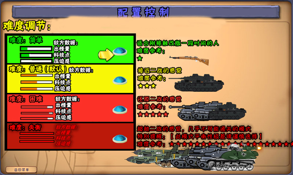 2、四档难度设定:游戏内置独立难度调节界面,包含简单、普通(默认)、困难及失衡四种模式。难度越高,敌方僵尸的生命值、攻击力与进攻频率显著提升;其中“失衡”模式数值极端,主要用于极限挑战或测试用途,常规通关难度极高。