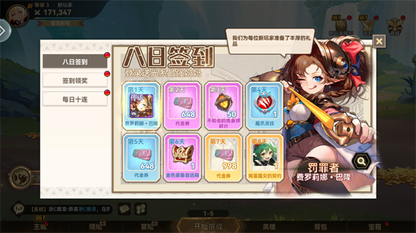 新玩家连续签到8天即可领取神话级英雄“费罗莉娜・巴隆”、海量代金券及金色装备自选箱等超值奖励,助力开局快人一步。