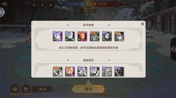 游戏内设有“推荐阵容”功能板块,新手可优先尝试“冰公主+射手”组合:冰公主提供控制与加速,射手专注后排爆发输出,是前期高效通关的黄金搭档。