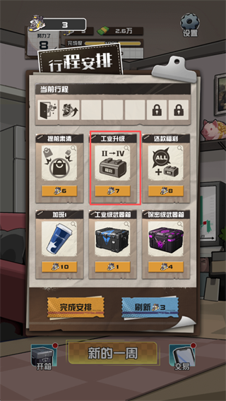6. 根据当前资金状况与目标,合理组合行程,确认无误后点击【完成安排】推进周目。