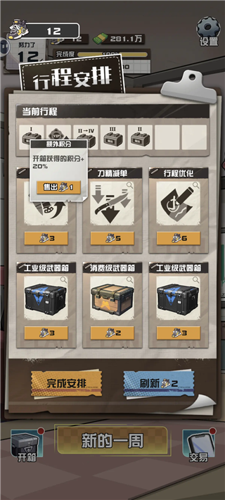 1. 将【额外积分】与【工业升级】两项行程同时启用,可触发特殊的收益反转机制,大幅提升红箱产出效率。