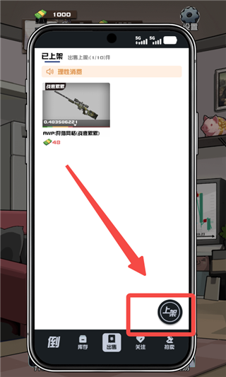 7. 新周开始后,前往【出售】界面,选择【上架】操作准备变现。