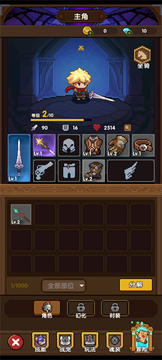 前期以掉落装备为主,重点强化武器与防具,快速提升攻击、防御及生命值。背包中低阶或重复装备可通过“分解”回收材料,为后续强化储备资源。