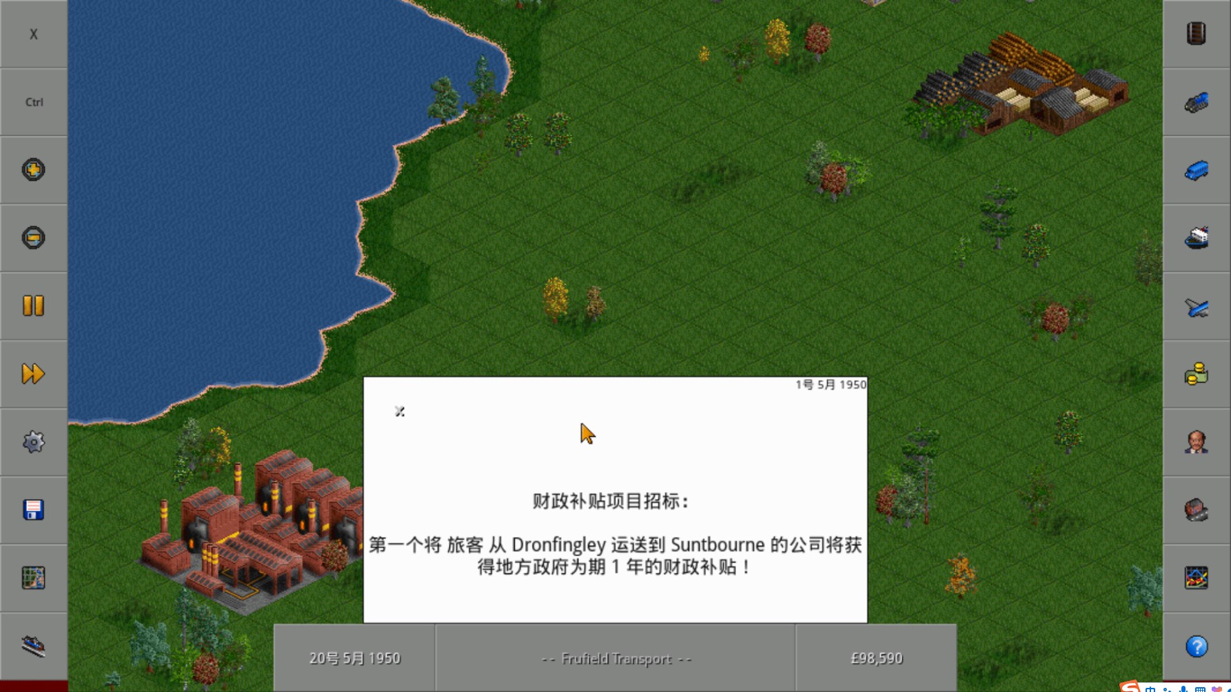 1. 在本站下载并安装运输大亨OpenTTD汉化版后,启动游戏。