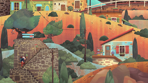 1. 沉浸式手绘美学:黄昏海岸、坡道小镇、山野村落……每一帧皆如精心绘制的艺术绘本,色彩柔和层次丰富,赋予旅程诗意视觉享受。