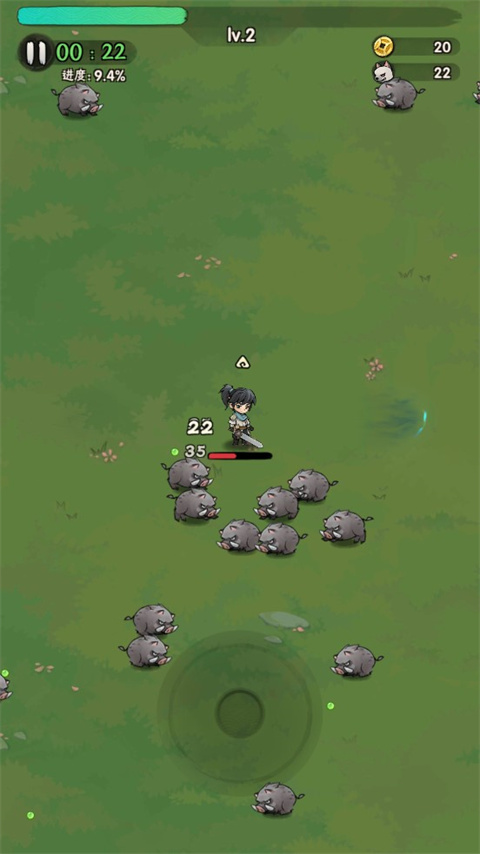 5. 操控屏幕中央虚拟摇杆,精准控制角色移动与走位;