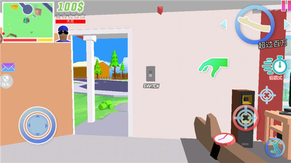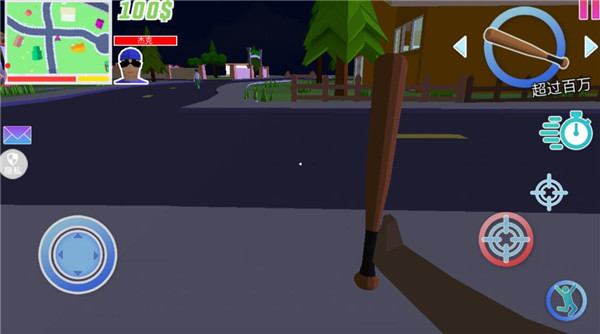 4. 走出室内探索广阔地图,可使用木棒、枪械等工具与环境互动(注意:攻击路人将触发警报)。