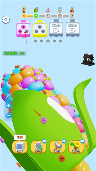 2. 根据上方提示的颜色与数量要求,合理点击并移除对应螺丝(钉子)。