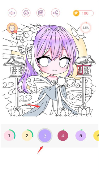 4、底部调色盘提供多种颜色选项,系统会自动匹配对应编号区域,错误颜色无法填充。
