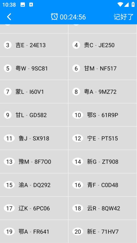 5. 车牌号记忆:模拟真实场景,记忆由字母与数字组成的车牌组合,提升日常实用记忆技巧。