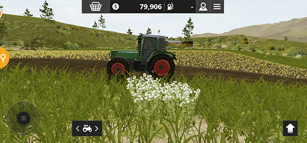 3. 初期拥有一块已成熟的小麦田,使用联合收割机进行收割:右侧滑动条控制油门(前进/后退),左侧方向盘控制方向。