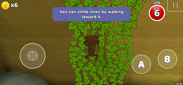 5. 靠近藤蔓或树叶时,向上推动左下角摇杆即可控制超级熊向上攀爬。
