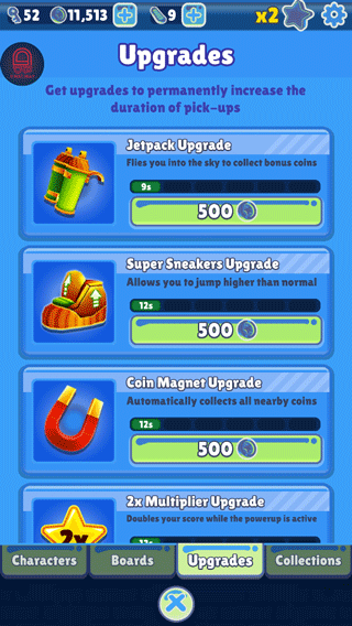 2倍分数(X2):将当前倍速从X30提升至X60,每跑1米得分翻倍(由30分变为60分),同时小幅提升角色速度。尽管外观普通,但收益极高,建议见则必吃。