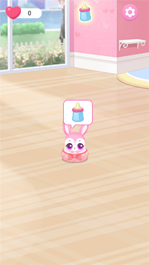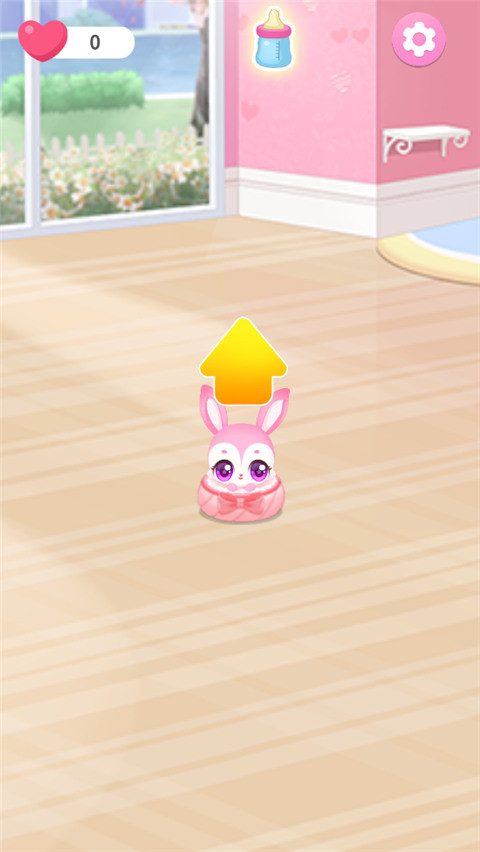 2. 屏幕上方显示奶瓶图标,拖拽至精灵身上即可进行喂食。