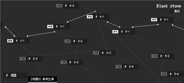 1. 第二章“困境”中,浅层将“背包”关联至“思绪:混乱”,线索变为“#白#黑石#”,再连接至“私人报告”(解锁2-2);