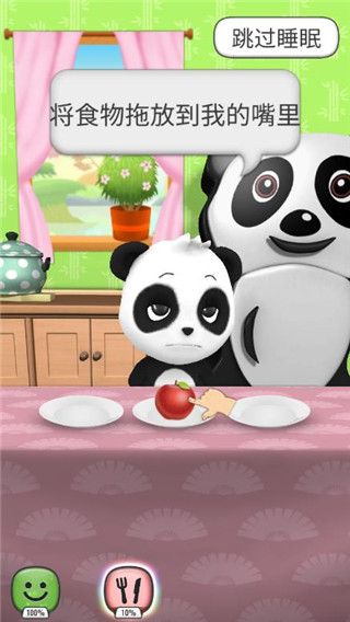 1. 熊猫宝宝饿了?只需将食物拖拽到它嘴边,它就会开心地吃起来。