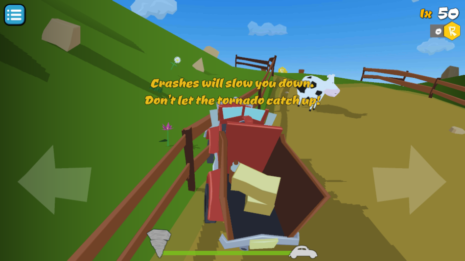 1. 无尽逃亡挑战:在龙卷风的持续追击下,前方没有终点,奔跑距离越远,得分越高,考验你的极限反应与持久耐力。