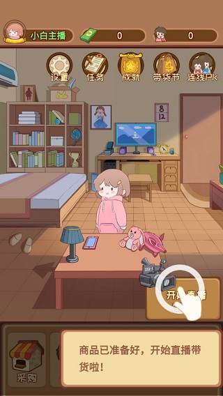 首先进入商店采购商品用于直播销售。随着粉丝增长,可选商品种类将不断扩充。