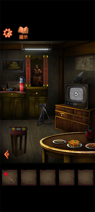 2. 点击电视屏幕,获取楼梯下工具箱密码“5273”,打开后获得两个探音器。