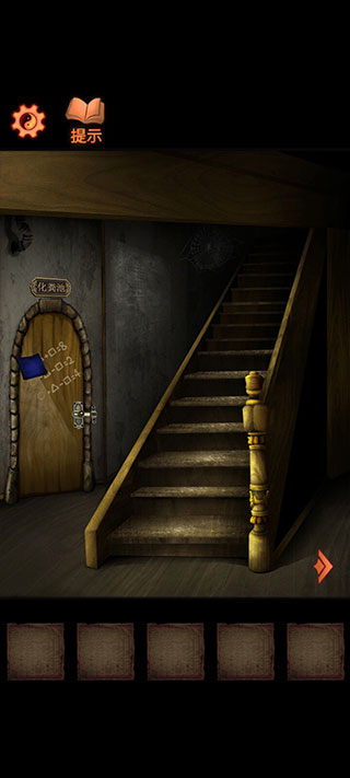 7. 点击下方抽屉取得蓝色毛巾;再从神像下方柜子中获得撬棍。前往楼梯左侧房间,用蓝色毛巾擦拭化粪池门上的灰尘,查看并解开方程式,得出密码“251”。