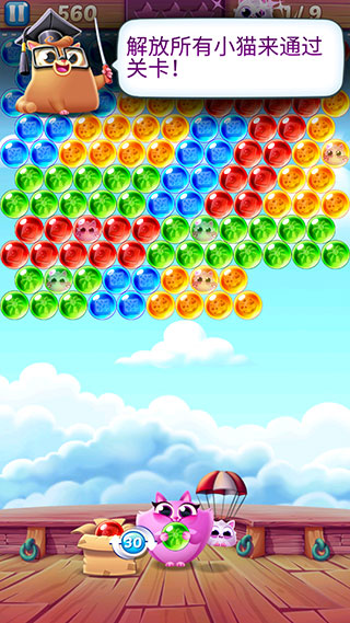 4、成功消除后,被气泡困住的小猫将被顺利解救。
