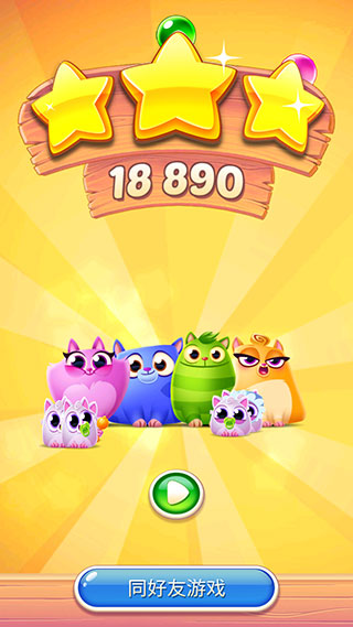 4、延续可爱卖萌美术风格,结合泡泡龙玩法,老少皆宜。