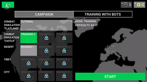 - 选择关卡(如TRAINING 1),点击右下角START开始挑战。