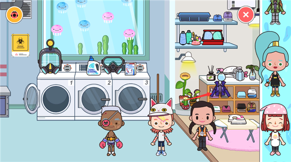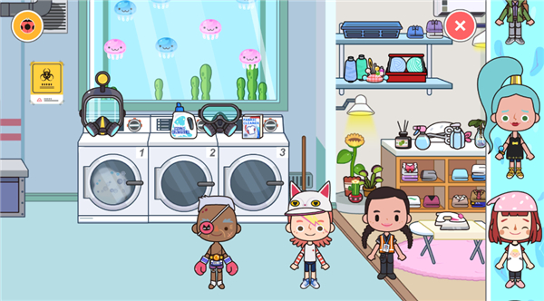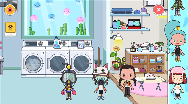 - 例如在洗衣房中,点击洗衣机即可整理内部衣物,体验真实清洁流程。