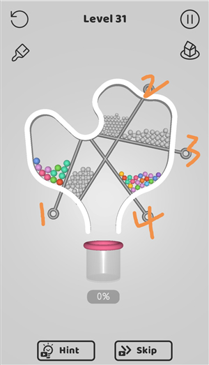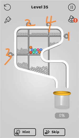 4. 唯有精准把握拔针时机与顺序,才能让所有小球顺利抵达终点;
