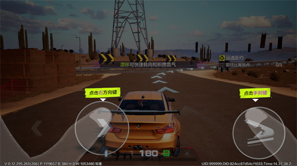 4、漂移操作:快速转向同时点击方向键与手刹键积攒氮气;