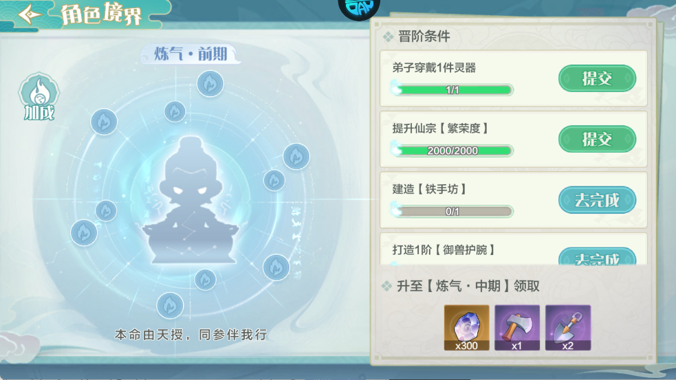 每日必做日常任务,优先选择突破丹等高价值奖励;同时挑战副本、完成签到及参与收菜玩法,稳定获取经验与发展资源。