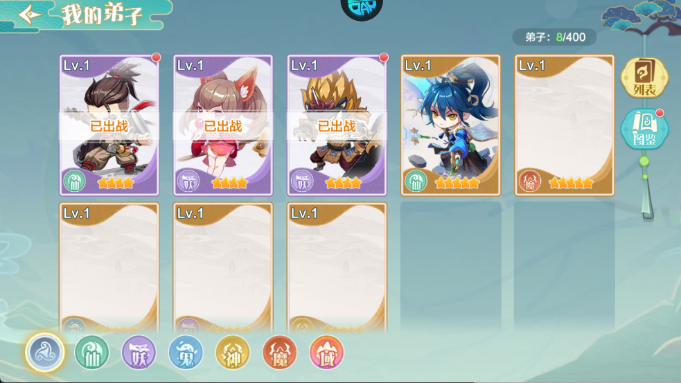 2、弟子招募与阵容搭配