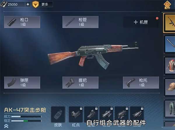 枪械按品级从白板至金色递增,金色武器不仅基础属性更强,还可装配瞄准镜、枪口、弹夹等配件,通过改装与升级打造终极“毕业武器”。