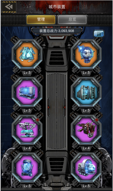 3. 外设品质分绿、蓝、紫、橙四档,每个装置可装配3个外设,属性加成远超装置本身;