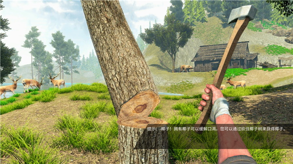2. 通过采集木材、砍伐树木、饮用椰子水、采摘苹果等方式维持基本生存需求,亲手打造斧头、火堆等关键工具是活下去的第一步。