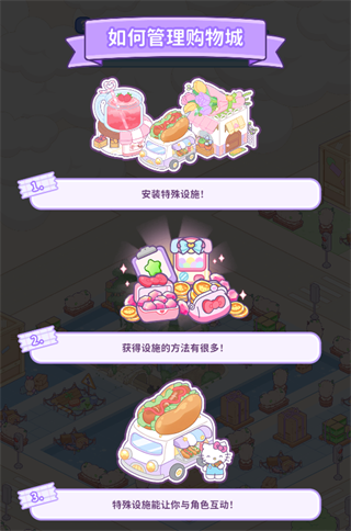 部分特殊设施不仅能带来额外收益或功能加成,还能与Hello Kitty、酷洛米等角色触发专属互动动画,大幅提升游戏趣味性与收藏成就感。
