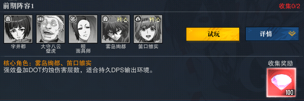 阵容组成:宇井郡 + 大守八云壁虎 + 呗面具师 + 雾岛绚都 + 笛口雏实