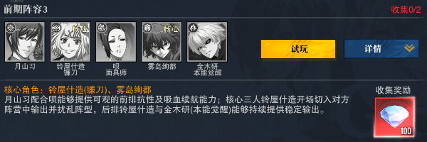 阵容组成:月山习 + 铃屋什造镰刀 + 呗面具师 + 雾岛绚都 + 金木研本能觉醒