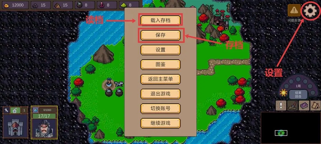 (1)存档与读档:点击右上角设置面板,可进行局内存档或读取进度。