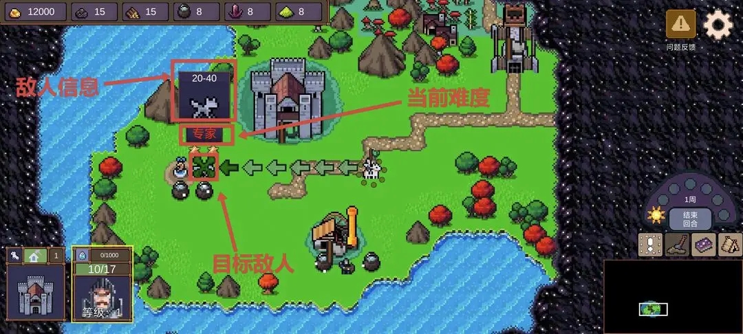 点击敌方驻守点可查看兵种构成与难度评估(难度随我方兵力增强而降低)。建议壮大后再挑战。确认攻击后移动至敌方位置触发战斗,胜利即可占领资源点。