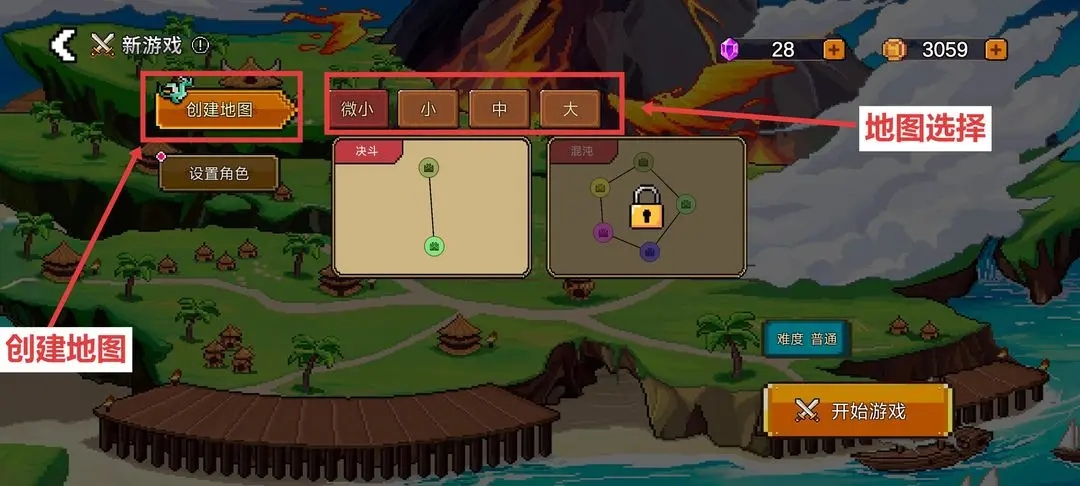 在主菜单点击“新游戏”→“创建地图”,可选择微小、小、中、大四种地图规模(推荐新手选择微小地图中的决斗模式)。完成地图设定后,进入角色设置界面:点击种族栏选择阵营(建议新手选「秩序」,兵种丰富且易上手),随后挑选英雄。最后选择难度(推荐“简单”),点击“开始游戏”即可启程。